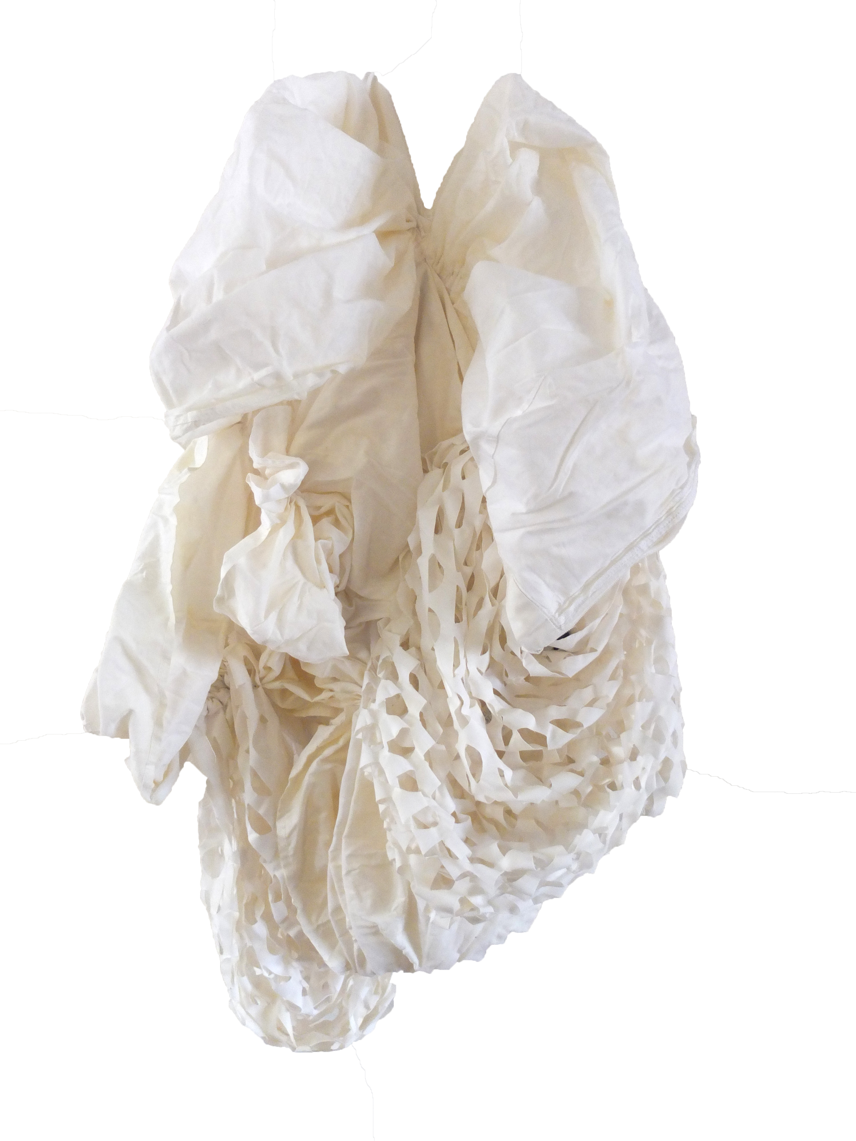 Unlearning the Garment from the Body is a process of taking apart existing garments--garments that I have found and collected over the years, and garments that I have made myself--in order to question the relationship between the garment and the body. The garments are cut apart and deconstructed, and then hand sewn back together. But they are not exact or precise reconstructions. This process is not about taking something apart, only to put it back exactly the way you found it. A dress form is used to build these new pieces. It gives an armature to build off of, but it no way determines how the garments are worn. There are openings for limbs, torsos and necks. But they are not documented on a body. Because they are meant to make you question how they interact with and on a body. Are they garments or are they sculpture? Maybe they are both. Maybe they are neither.